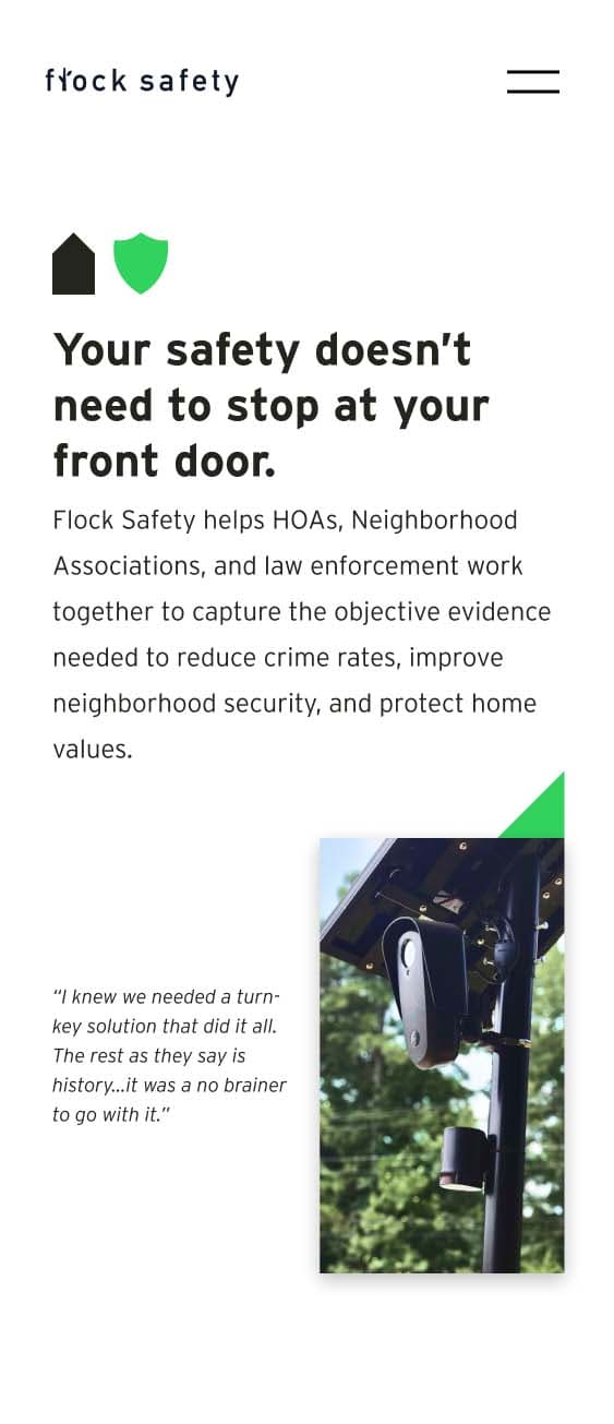 By testing multiple versions of our homepage design and other sections of the Flock Safety website, we were able to maximize the site’s engagement and double the conversions within five months of the site launch.