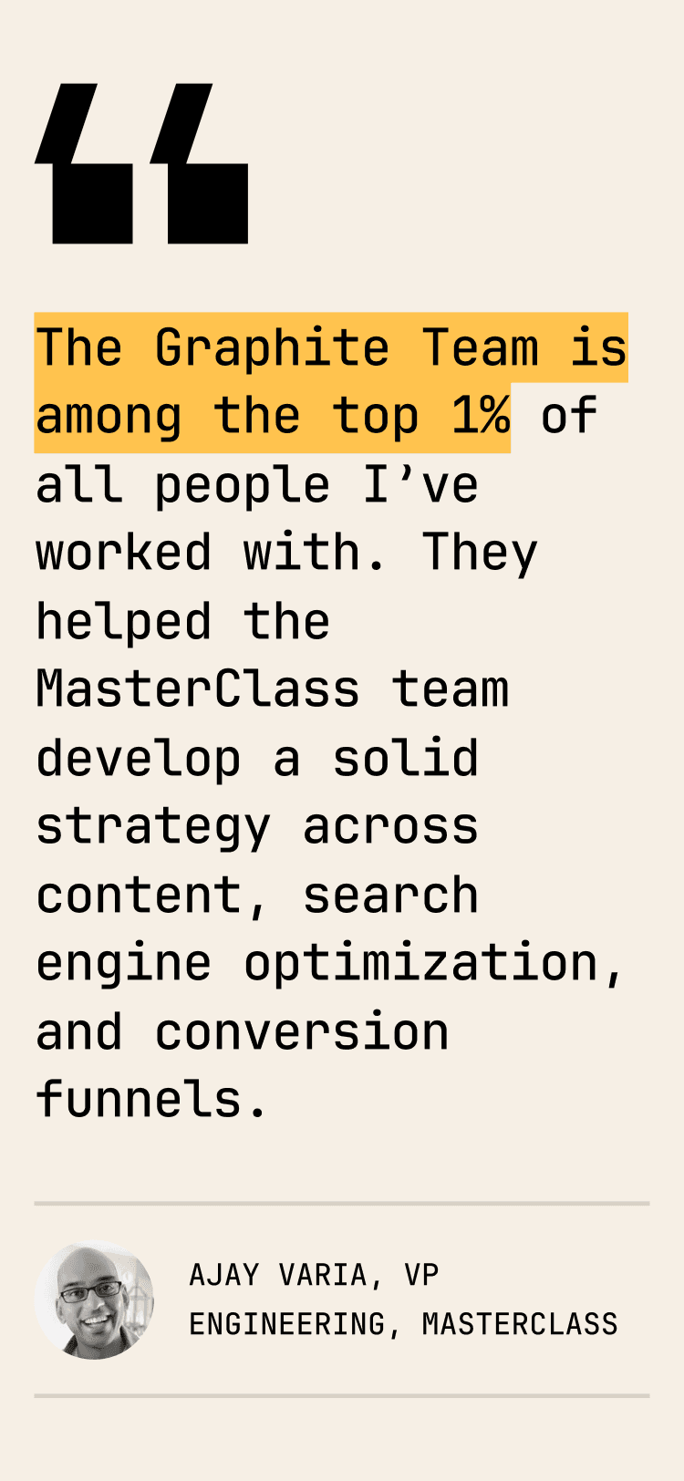 Graphite needed a platform to embody their vision—“The best content, everywhere that matters”—by making SEO education accessible and actionable. Beyond just housing content, it had to present data-driven insights in a fresh, engaging way, using diverse formats to help businesses easily digest and apply key strategies